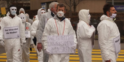 U švajcarskom poreskom raju, gradu Cugu, oko 500 građana danas je protestovalo zbog restriktivnih antiepidemioloških mera noseći bela zaštitna odela i uzvikujući (distopijske) parole protiv totalitarizma i globalizma, javlja Rojters