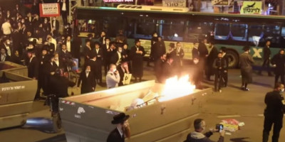Stotine muškaraca Haredi zajednice okupilo se u utorak uveče na protestu protiv mera javnog zdravlja, posebno zbog zatvaranja škola, poznatih kao ješive.