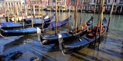Gondole u mnogim venecijanskim kanalima leže besposlene, negde u plitkoj vodi a negde i u blatu, jer su čuvene „saobraćajnice“ Venecije zbog oseke gotovo presušile.