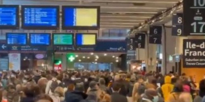 ?À quelques heures du reconfinement, qui entrera en vigueur ce soir à minuit, de nombreux trains affichent complets comme ici à la gare Montparnasse à Paris.
