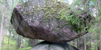 The Kummakivi Balancing Rock in Finland. Legend correctly states that the stone was placed there by giants.