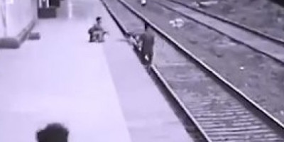 U to vreme se stanici približavao voz. Radnik je skočio na prugu i potrčao prema detetu. Dignuo je dete i gurnuo ga na peron, gde se zatim i sam popeo.