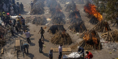 U protekla 24 sata od korona virusa umrle su 2.624 osobe, sto je najviše od početka pandemije. Krematorijumi u Nju Delhiju saopštili su da su popunjeni i zamolili porodice žrtava da čekaju, a u mnogim delovima preminule spaljuju na lomačama na otvorenom.