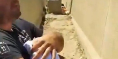ŠOK VIDEO! Pogledajte kako otac drži bebu u naručju dok iznad njega sevaju rakete! /FOTO/VIDEO/