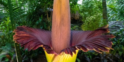 Cvet botaničkog imena amorphophallus titanum je izložen na napuštenoj benzinskoj pumpi, a privukao je oko 1.000 posetilaca koji su požurili da vide biljku koja ispušta miris sličan mirisu trulog mesa.