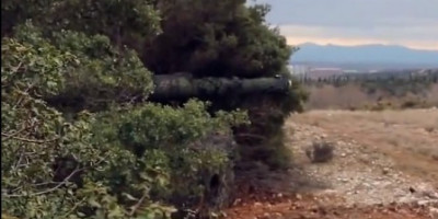Tvit sa video snimkom prikazuje tenk Abrams i borbeno vozilo Bredli koji se kriju u naborima terena i gustom rastanju.