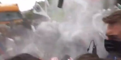 Dok je odgovarao novinarima na pitanja tokom Marša za slobodu, antidesničarskog skupa koji je održan i u drugim francuskim gradovima, jedan napadač mu je prišao i bacio mu brašno u lice, preneo je B92.