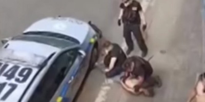 U pozadini se čuju glasovi nekoliko prolaznika koji su posmatrali ovo brutalno privođenje.