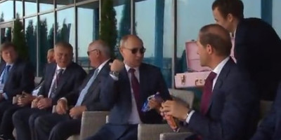 Osvežavajući desert je donet u ružičastoj kutiji, a prvo se počastio ruski lider, zatim ministar industrije i trgovine Denis Manturov i generalni direktor "Rosteka" Sergej Čemezov, kao i ostatak delegacije.