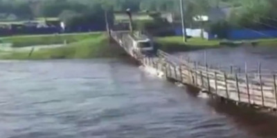 Na društevnim mrežama se pojavio snimak iz istočne Rusije na kom se vidi kako se poplavljeni viseći most ruši u trenutku dok preko njega prelazi kamion.
