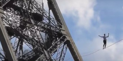 Francuz je bio privezan sigurnosnim užetom i polako je hodao po konopcu razapetom preko reke između Ajfelovog tornja i pozorišta Šelo.