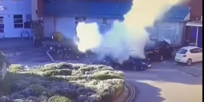 Nadzorne kamere su snimile kako se taksi približava bolnici i eksplodira nedaleko od ulaza. Stakla automobila su polomljena i pojavio se gusti dim, a u tom trenutku je taksista Dejvid Peri iskočio iz kola, oko 6 sekundi nakon praska.
