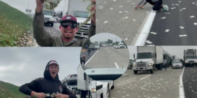 Dve osobe su već uhapšene, saopštili su zvaničnici. Vozači su u ponedeljak zaustavili ono što su radili i krenuli da pokupe "besplatan" novac na severnoj strani međudržavnog puta 5 u blizini Karlsbada u Kaliforniji.