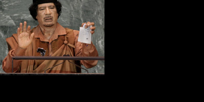 "U ime Alaha, milostivog. 40 godina, ili je bilo duže, ne mogu da se setim, činio sam sve što sam mogao da ljudima dam kuće, bolnice, škole, a kada su bili gladni, davao sam im hranu. Čak sam i Bengazi pretvorio u poljoprivredno zemljište iz pustinje. Suprotstavio sam se napadima onog kauboja Ronalda Regana, kada je ubio moju usvojenu ćerku siroče, pokušavao je da ubije mene, umesto toga ubio je to jadno nevino dete. Tada sam pomogao svojoj braći i sestrama iz Afrike novcem za Afričku uniju. Učinio sam sve što sam mogao da pomognem ljudima da shvate koncept prave demokratije, gde su narodni odbori upravljali našom državom. Ali to nikad nije bilo dovoljno, kako su mi neki rekli, čak i ljudi koji su imali 10 soba, nova odela i nameštaj, nikada nisu bili zadovoljni, koliko su bili sebični uvek su želeli više", rekao je Gadafi.