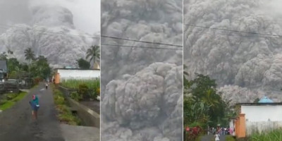 Na dramatičnim snimcima vide se meštani koji beže sa planine dok sivi oblaci ispunjavaju nebo u sceni koja liči na sudnji dan, piše Independent.co.uk.