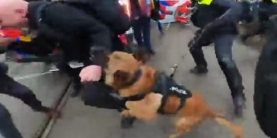 Na društvenim mrežama može se videti snimak policijskog psa kako rastrže ruku jednog demonstranta u trenucima kada se interventna policija, koristeći vodene topove i pse, sukobila sa građanima na protestu protiv mera zatvaranja koje je uvela holandska vlada.