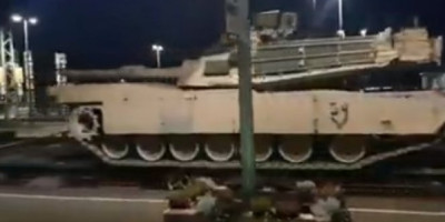 Snimak, koji se pojavio sa jednog parkirališta pokazuju tenkovsku četu sa dva vozila za izvlačenje, kako stoje na vučnim vozovima i čekaju transport do baze gde će biti razmešteni ponovo u Nemačkoj zbog moguće ruske pretnje invazijom.