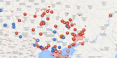 Na ukrajinskom sajtu liveuamap.com, koji prati izveštaje o napadima i oglašenim uzbunama na ukrajinskoj teritoriji u realnom vremenu, može se videti tačna razmera ruske ofanzive koja je počela danas u zoru
