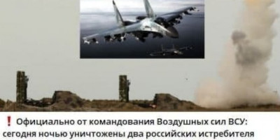 Ukrajinski Telegram kanal piše da su tokom noći tokom vazdušne borbe oboreni dva ruska lovca Su-35S i jedan ukrajinski MiG-29