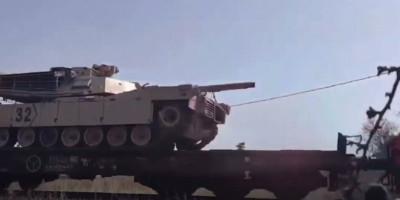 Snimak je objavljen u ruskim medijima i na društvenim mrežama, i na njemu se vidi grupa muškaraca koja kesama napunjenim crvenom bojom gađa borbena vozila pešadije Bredli i tenkove Abrams.