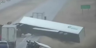 Na snimcima koji su zabeleženi vide se uništene kuće kao i prevrnuti kamionu na putu.