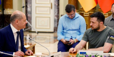 Olaf Šolc i Emanuel Makron sa Zelenskim u Kijevu
