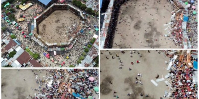 Na objavljenim snimcima vidi se kako se ruši drvena tribina sa gledaocima borbe sa bikovima organizovane povodom verskog praznika Svetog Petra i Svetog Pavla i kako ljudi beže u panici.