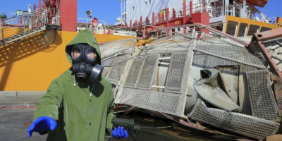 Na video-snimku državne televizije zabeležen je trenutak kada rezervoar za skladištenje pada sa krana i udara u palubu broda, a zatim eksplodira, kao i ljudi koji beže od žutog oblaka koji se uzdiže.
