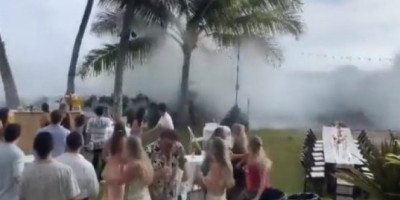 VIDEO: Massive waves crash an outdoor wedding reception in Kailua-Kona, on Hawaii's Big island, amid a tropical storm pic.twitter.com/4SJYMrHqJJ
