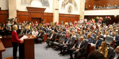 Tada je predsednica Evropske komisije uveravala makedonske poslanike da tokom pregovora o ujedinjenju niko neće dovesti u pitanje makedonski jezik i makedonsku identičnost, kao i da istorijska pitanja neće figurirati na pregovorima. Fon der Lajen je izjavila da se u procesu pregovora pojam „makedonski jezik“ nikako neće dopunjavati.