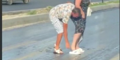 Naime, zbog ekstremno jakih vrućina ženi su počele da se lepe papuče jer se asfalt počeo topiti.