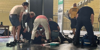 Ruždi je pao na pod, a prisutni su uhvatili napadača.