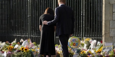 Braći su se pridružile Megan Markl i Kejt Midlton u zamku Vindzor, prinčevi Vilijam i Hari su zajedno sa svojim suprugama Kejt Midlton i Megan Markl pogledali cvetne počasti ostavljene kraljici nakon njene smrti.