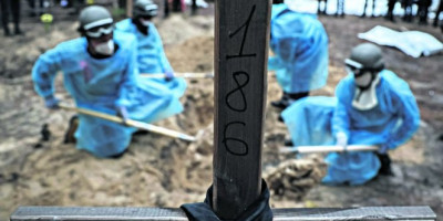Ukrajinske vlasti uz pomoć Zapada pokušavaju da ratno groblje u Izjumu u Harkovskoj oblasti svetu predstave kao masovnu grobnicu i Rusiju optuže za ratne zločine. Kijev tvrdi da se u "masovnoj grobnici" nalaze 443 tela, uglavnom civila, čija je ekshumacija u toku, međutim, na fotografijama koje su objavljene jasno se vidi da su u pitanju propisno obeleženi grobovi sa postavljenim krstovima.