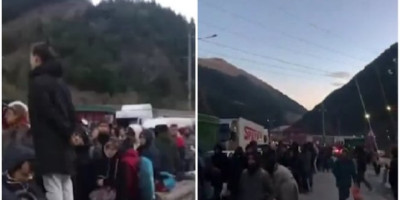 Kako se na snimku može videti, prikazan je veliki broj uglavnom muškaraca, a navodno je reč o Rusima koji su stvorili veliku gužvu pokušavajući da uđu u Gruziju.