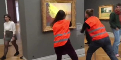 Devet dana nakon što su članovi organizacije "Just Stop Oil" supom od paradajza polili "Suncokrete" Vinsenta van Goga u Nacionalnoj galeriji u Londonu, dvojica aktivista iz organizacije "Letzte Generation" (Poslednja generacija), ušli su u Muzej Barberini u nemačkom Potsdamu i pire krompirom polili "Stogove sena" Kloda Monea.