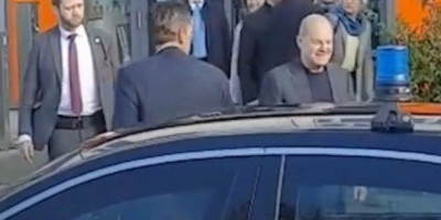 Kao odgovor na poruku demonstranta, nemački kancelar se nasmešio, ušao u auto i otišao.