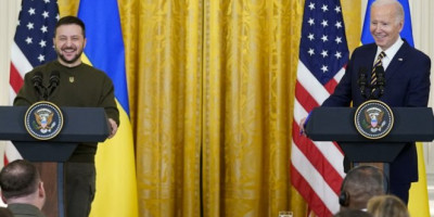 Nakon što su ukrajinski i američki predsednik razgovarali s novinarima iz Bele kuće, Volodimir Zelenski je uručio je Džou Bajdenu nagradu Heroja Ukrajine.