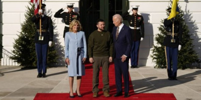 Zelenski je uručio Bajdenu vojnu medalju za koju kaže da je pripadala ukrajinskom vojniku u Bahmutu. Zelenski je rekao je da ga je vojnik kojeg je juče sreo u Bahmutu zamolio da preda njegovu medalju "hrabrom američkom predsedniku".