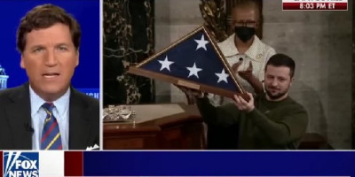 Poseta Vladimira Zelenskog Beloj kući i Kongresu izazvala je gnev voditelja Foks njuza Takera Karlsona koji je više puta kritikovao kako je bio obučen ukrajinski predsednik iz vremena rata