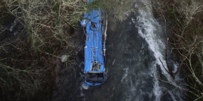 Dve osobe, uključujući vozača, povređene su nakon što je autobus koji je putovao od Luga do Viga pao sa visine od oko 30 metara u reku koja brzo teče, preneo je Bi-bi-si (BBC).