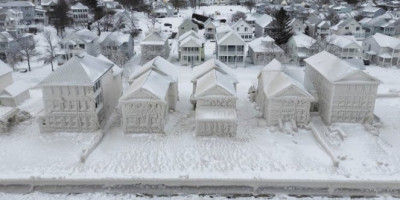 Nakon snažne zimske oluje koja je pogodila Ontario u Kanadi, kuće duž obale jezera Iri bile u potpunosti prekrivene ledom, a zaledili su se i delovi Nijagarinih vodopada