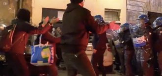Police kettle a demo in Rome in solidarity with anarchist #AlfredoCospito