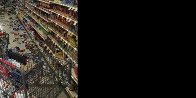 Potres je oborio stvari sa rafova u prodavnici, vidi se na fotografijama objavljenim na Tviteru.