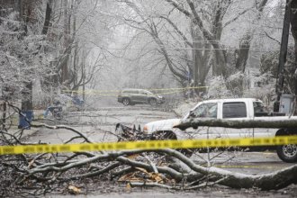 The monster storm that left more than 980,000 families and businesses without power is now encasing northern states in ice. @TrevorLAult reports as a Michigan town mourns the volunteer firefighter who was killed by a downed power line. https://t.co/4Qauep3X0cpic.twitter.com/xioWFj8XkN