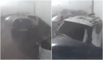 Na snimku se vidi kako jedan automobil pretiče levom trakom uprkos peščanoj oluji zbog koje se praktično ništa nije videlo. On se u jednom momentu zaustavlja jer je na putu kolona vozila koja se ne pomiče, ali vozač iza njega to ne vidi i velikom brzinom se zakucava u auto ispred sebe.