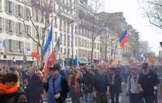 Na posterima učesnika piše: "Zaustavite rat koji izazivaju SAD i NATO", "Sloboda, istina, otpor", "Glasanje nepoverenja – mir u Francuskoj".