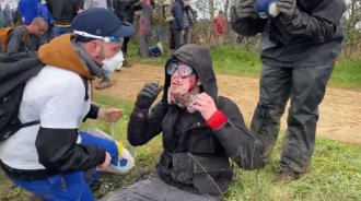 Oko gradilišta, koje brani policija, brzo su izbili nasilni sukobi između snaga bezbednosti i radikalnih militanata, javili su dopisnici AFP-a.