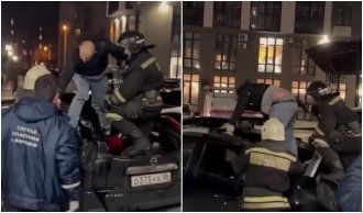 Na video snimku na društvenim mrežama se vidi kako spasioci u gradu Voronježu pomažu žrtvi, koja je očigledno bila pijana. Neki izveštaji tvrde da je čovek možda skočio.