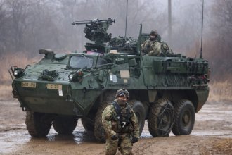On je takođe napomenuo da su američki oklopni transporteri "Strajker", koje koriste kijevske trupe, opremljeni dodatnim zalihama goriva i kutijama sa suvim obrokom u zadnjem delu vozila.